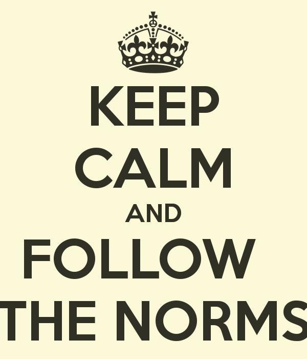 Norms are standards of proper or acceptable behavior. As a community standards are a high quality to have because it creates a better working organization of any type. Adding to that, when you're working having norms makes you more professional, mature, and diligent. These characteristics are one of the few keys to functioning in any job task or group work. For example; having the norms of being respectful. You don't want to interrupt someone while they're speaking during a presentation or in any conversation. Also, having the norms of good civil service. As a citizen you it's important to have this trait. Overall, as a an individual, you should set norms for yourself to be a better person. http://theliteracybooth.blogspot.com/2015/10/setting-norms.html